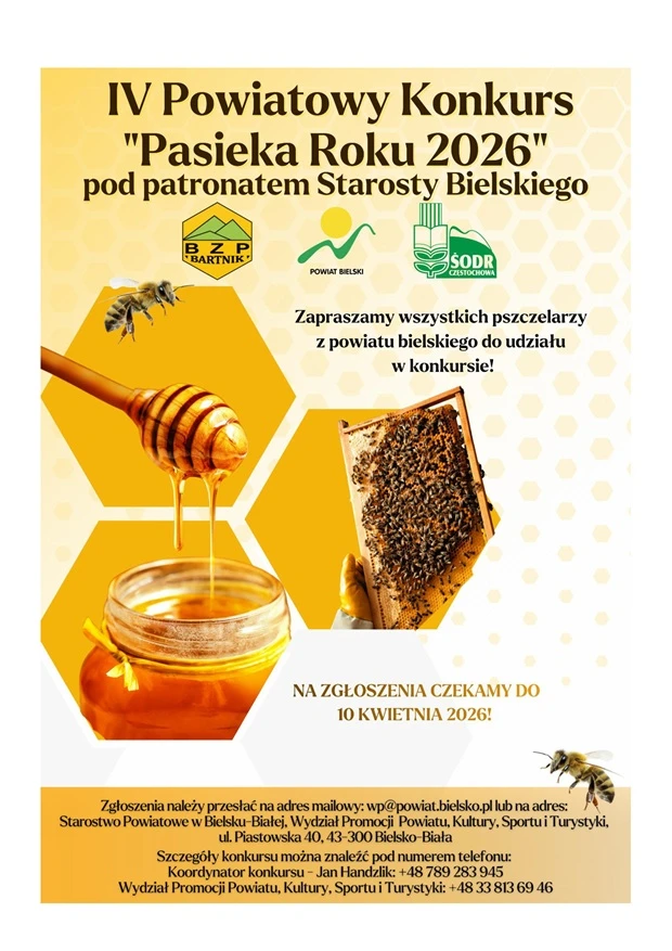 IV Powiatowy Konkurs „Pasieka Roku 2026” pod patronatem Starosty Bielskiego.