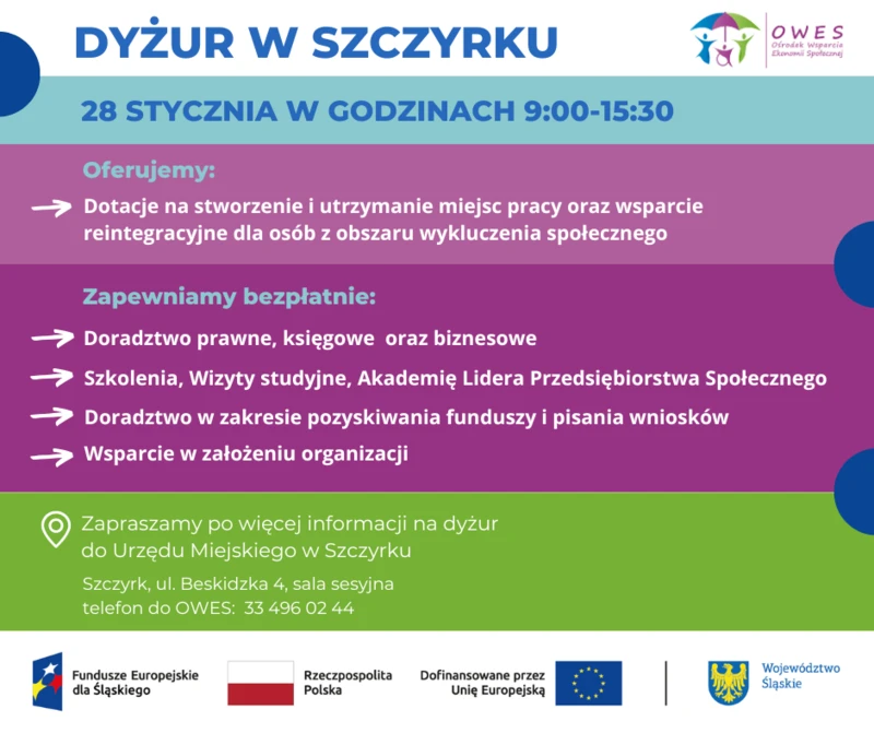 Zapraszamy na dyżur doradczy OWES w Szczyrku ✨